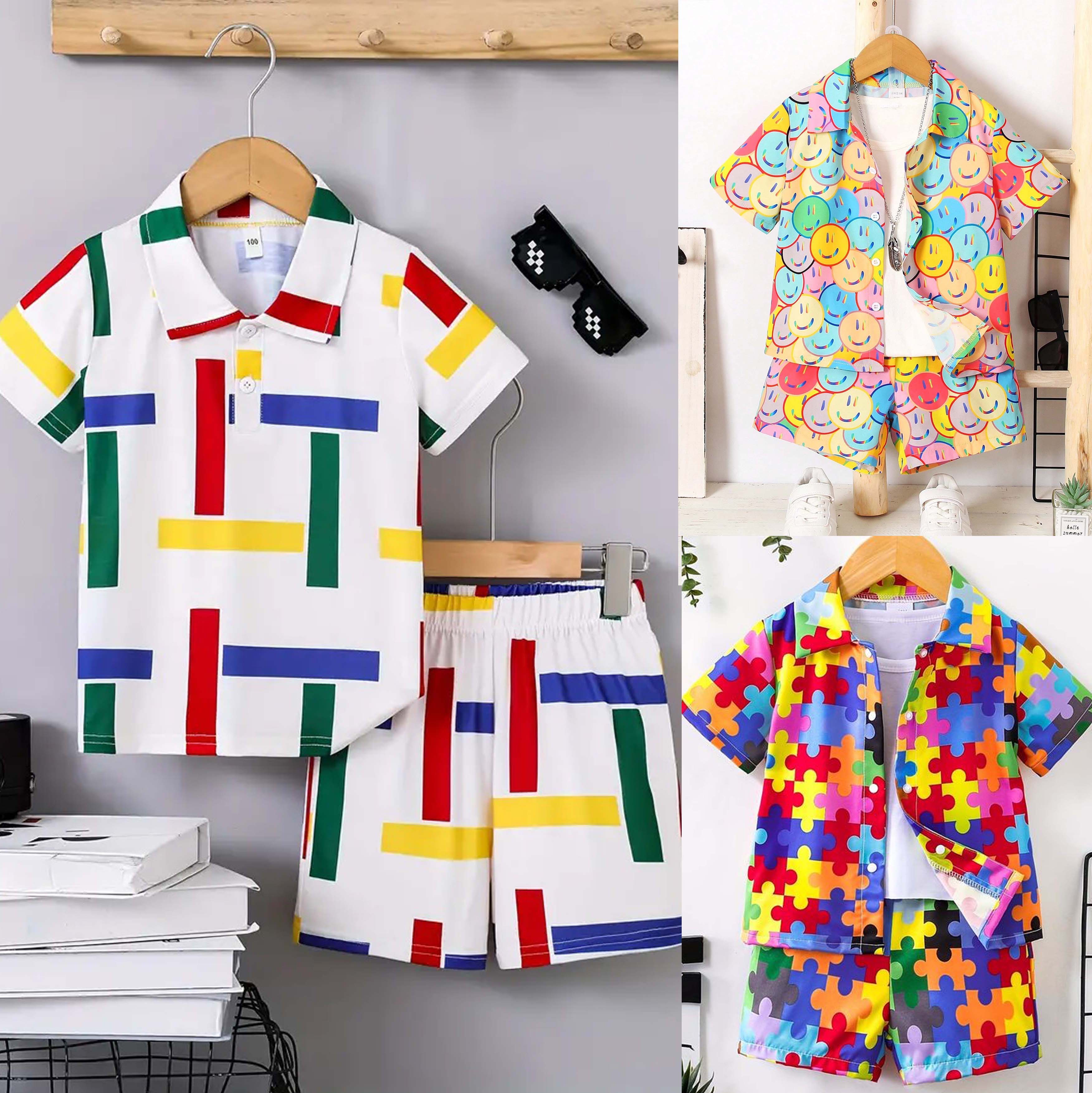 Bundle Of 3 All-Over 3D Printed 2-Pcs Summer Suit For Kids. D-01+04+07