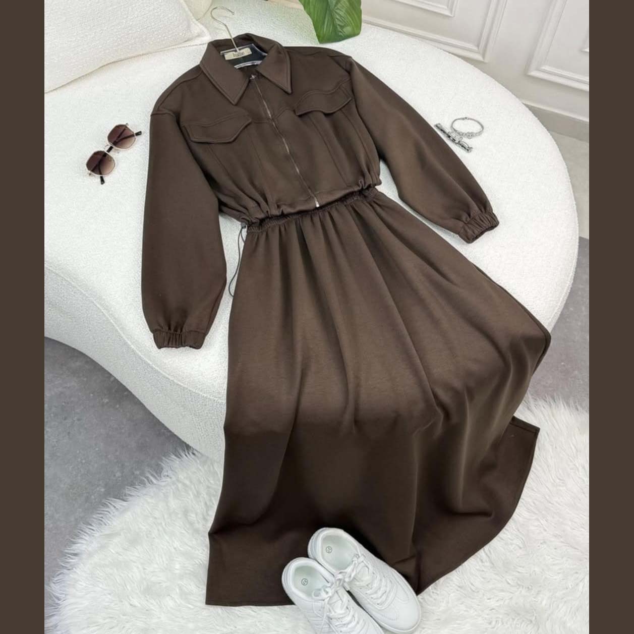 Drop Shoulder Short Jacket Maxi Style 2-Pcs Winter Co-Ord Set. WWTS-15 V2