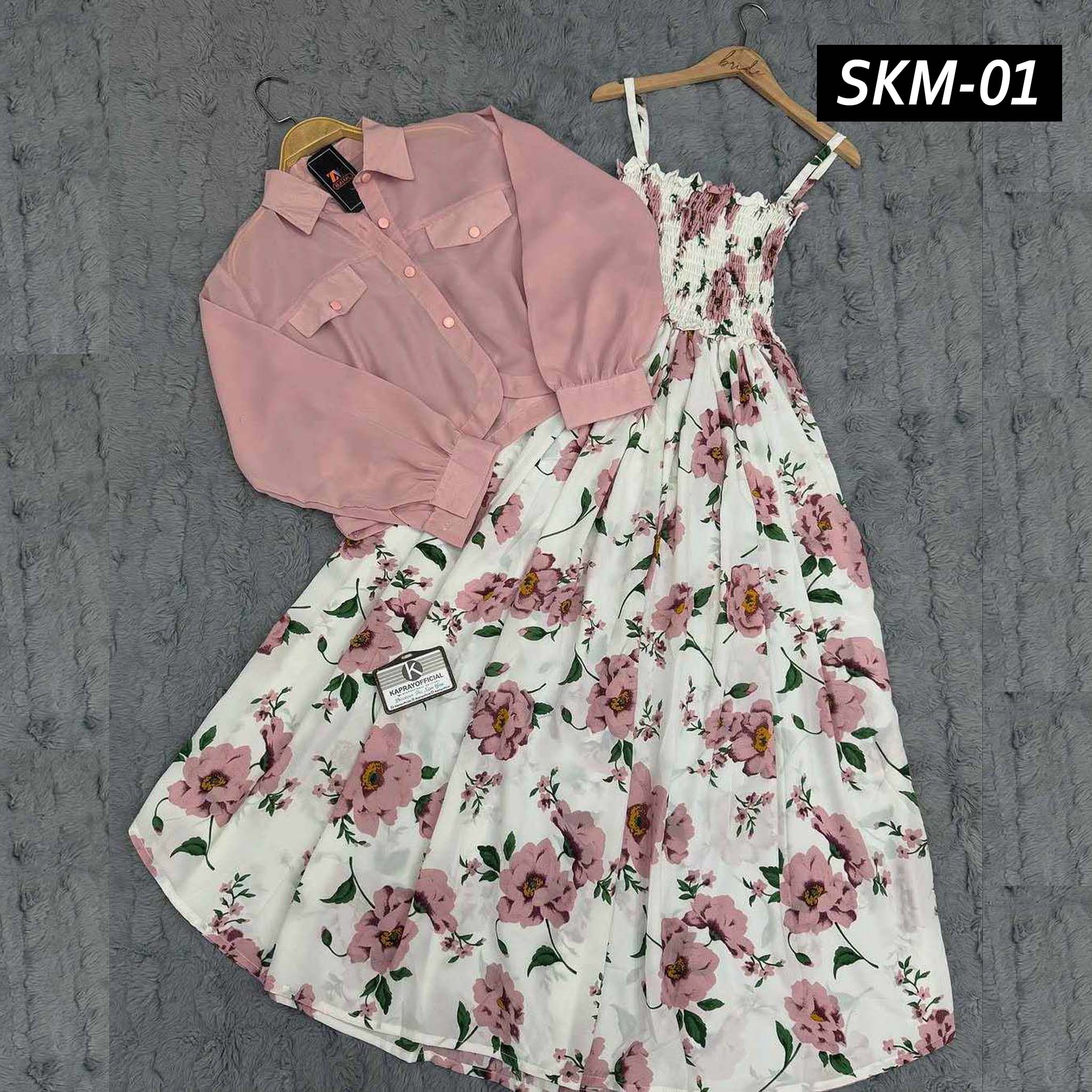 Short Koti & Printed Smoky Maxi Style Western 2-Pcs Stiched Suit. SKM-01